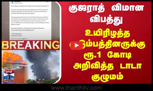 குஜராத் விமான விபத்து...உயிரிழந்த குடும்பத்தினருக்கு ரூ.1 கோடி அறிவித்த டாடா குழுமம்