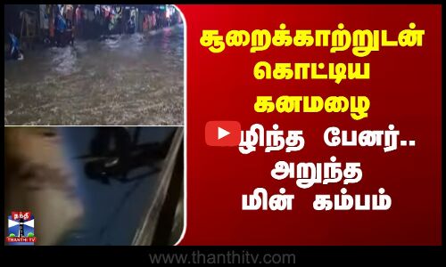 சூறைக்காற்றுடன் கொட்டிய கனமழை - கிழிந்த பேனர்.. அறுந்த மின் கம்பம்