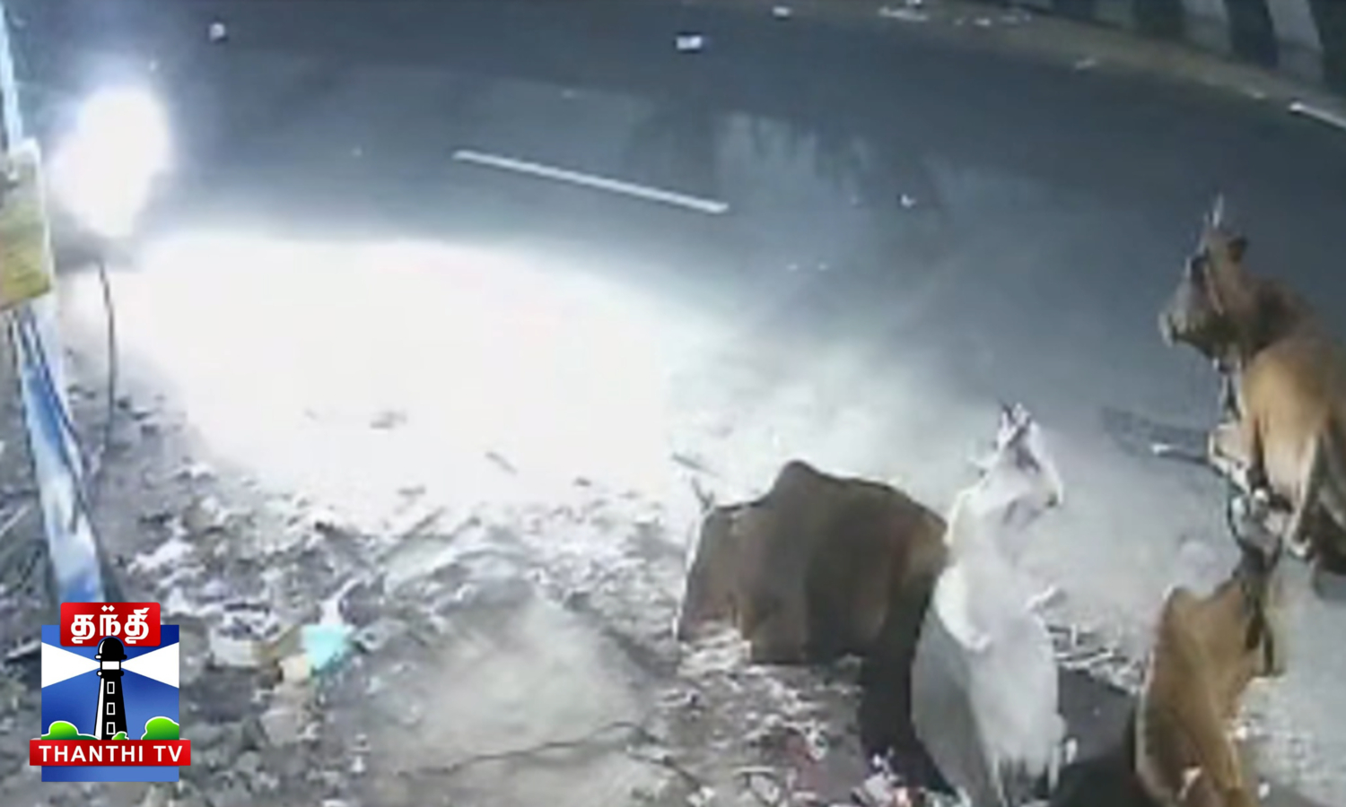 அதிவேகமாக பைக் ஓட்டி சாலையோரமாக மாடுகள் மீது மோதி கேரள இளைஞர் பரிதாபமாக உயிரிழந்தார். அதிர்ச்சியளிக்கும் சிசிடிவி வெளியானது. ஹெல்மெட் அணியாமல் சென்றதால் உயிரிழந்த சோகம். கேரள மாநிலத்தைச் சேர்ந்தவர் ஜாக்கப் வர்கீஸ் (23). அங்கு பிரபல மலையாள பத்திரிகை ஒன்றில் பணியாற்றி வந்தார். ஜாக்கப் வர்கீஸ் கல்லூரி அரியர் தேர்வு எழுதுவதற்காக சென்னை வந்தார். இன்று அதிகாலையில் கானாத்தூர் பேருந்து நிறுத்தம் அருகில் பைக்கில் தனது நண்பர் ஜஸ்வந்த்துடன் சாலையில் தவறான பாதையில் அதிவேகமாக சென்றார். அப்போது சாலையோரமாக படுத்து இருந்த மாடுகள் மீது மோதி தூக்கி வீசப்பட்டு சம்பவ இடத்திலேயே இறந்தார். இதில் மாடு ஒன்றும் உயிரிழந்ததாக தெரிகிறது. இது தொடர்பான சிசிடிவி காட்சி வெளியாகி அதிர்ச்சியை ஏற்படுத்தி உள்ளது. இது தொடர்பாக பள்ளிக்கரணை போக்குவரத்து புலனாய்வு பிரிவு போலீசார் விசாரணை செய்து வருகின்றனர். பைக்கில் வந்த இருவரும் தலைக்கவசம் அணியவில்லை என்பது போலீஸ் விசாரணையில் தெரிய வந்தது.