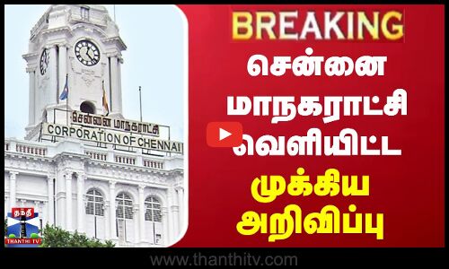 சென்னை மாநகராட்சி வெளியிட்ட முக்கிய அறிவிப்பு