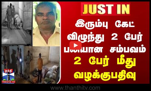 பொள்ளாச்சி அடுத்த கிணத்துக்கடவு அருகே தனியார் நிறுவனத்தில் இரும்பு கேட் விழுந்து 2 பேர் பலியான சம்பவம் /தனியார் நிறுவன மேலாளர் எபனேசர் கிருபாகரன், உற்பத்தி பிரிவு மேலாளர் சிவபெருமாள் மீது போலீசார் வழக்குப்பதிவு/தொழிலாளர்களை கவன குறைவாக, அஜாக்கிரதையாக, போதிய பாதுகாப்பு உபகரணங்கள் இல்லாமல் வேலை செய்ய அனுமதித்ததாக 3 பிரிவுகளில் வழக்கு