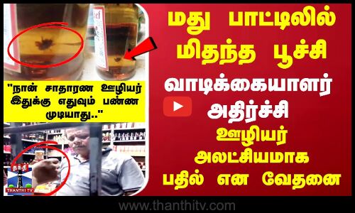 மது பாட்டிலில் மிதந்த பூச்சி.. வாடிக்கையாளர் அதிர்ச்சி.. ஊழியர் அலட்சியமாக பதில் என வேதனை