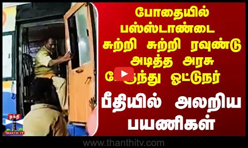 சிவகங்கை மாவட்டம் திருப்பத்தூரில் மதுபோதையில் இருந்த அரசு பேருந்து ஓட்டுநர் பயணிகளை ஏற்றிக் கொண்டு சாவகாசமாக பேருந்து நிலையத்தையே சுற்றி சுற்றி வந்த சம்பவத்தால் பயணிகள் பீதியடைந்தனர்