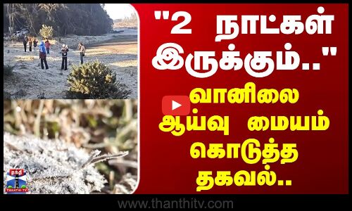 நீலகிரி மற்றும் கொடைக்கானலில் 2 நாட்களுக்கு உறைபனி சூழல் நிலவும் என சென்னை வானிலை ஆய்வு மையம் தெரிவித்துள்ளது..