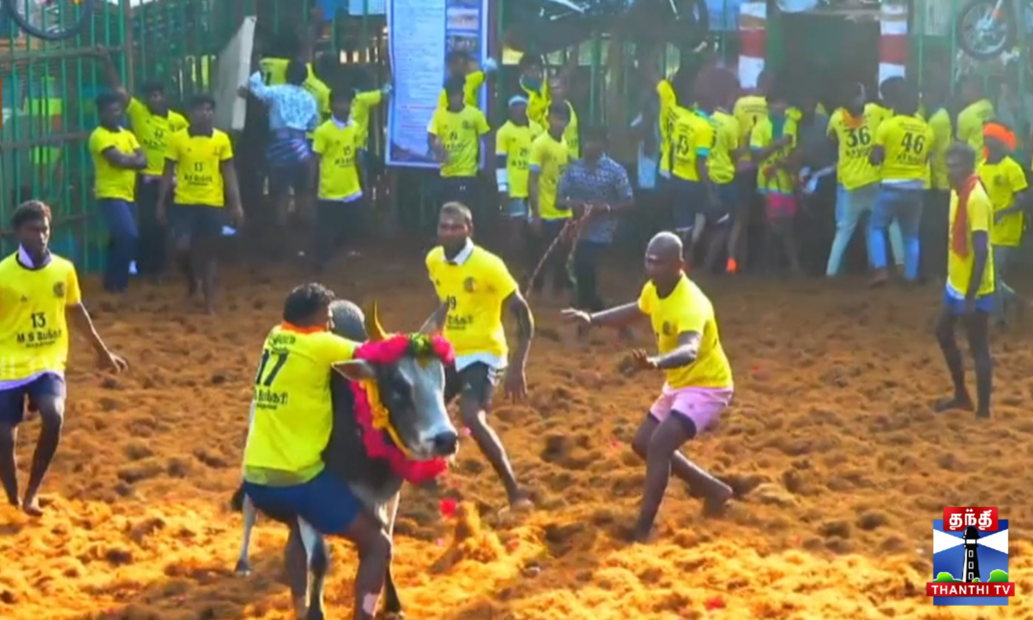 புதுக்கோட்டை மாவட்டம் முக்காணி பட்டியில் ஜல்லிக்கட்டு போட்டி தொடங்கி நடைபெற்று வருகிறது