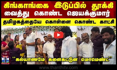 காமெடி நடிகர் கிங்காங் மகள் திருமண வரவேற்பு நிகழ்ச்சியில் அதிமுக முன்னாள் அமைச்சர் ஜெயக்குமார் கலந்து கொண்டு மணமக்களை வாழ்த்தினார். சென்னை அசோக் நகரில் நடைபெற்ற இந்த திருமண வரவேற்பு நிகழ்ச்சியில், அரசியல் தலைவர்கள், திரைப்பிரபலங்கள் உள்ளிட்டோர் கலந்து கொண்டனர். இதில் பங்கேற்ற அதிமுக முன்னாள் அமைச்சர் ஜெயக்குமார், நடிகர் கிங்காங்கை தனது இடுப்பில் தூக்கி கொண்டது நெகிழ்ச்சியை ஏற்படுத்தியது.