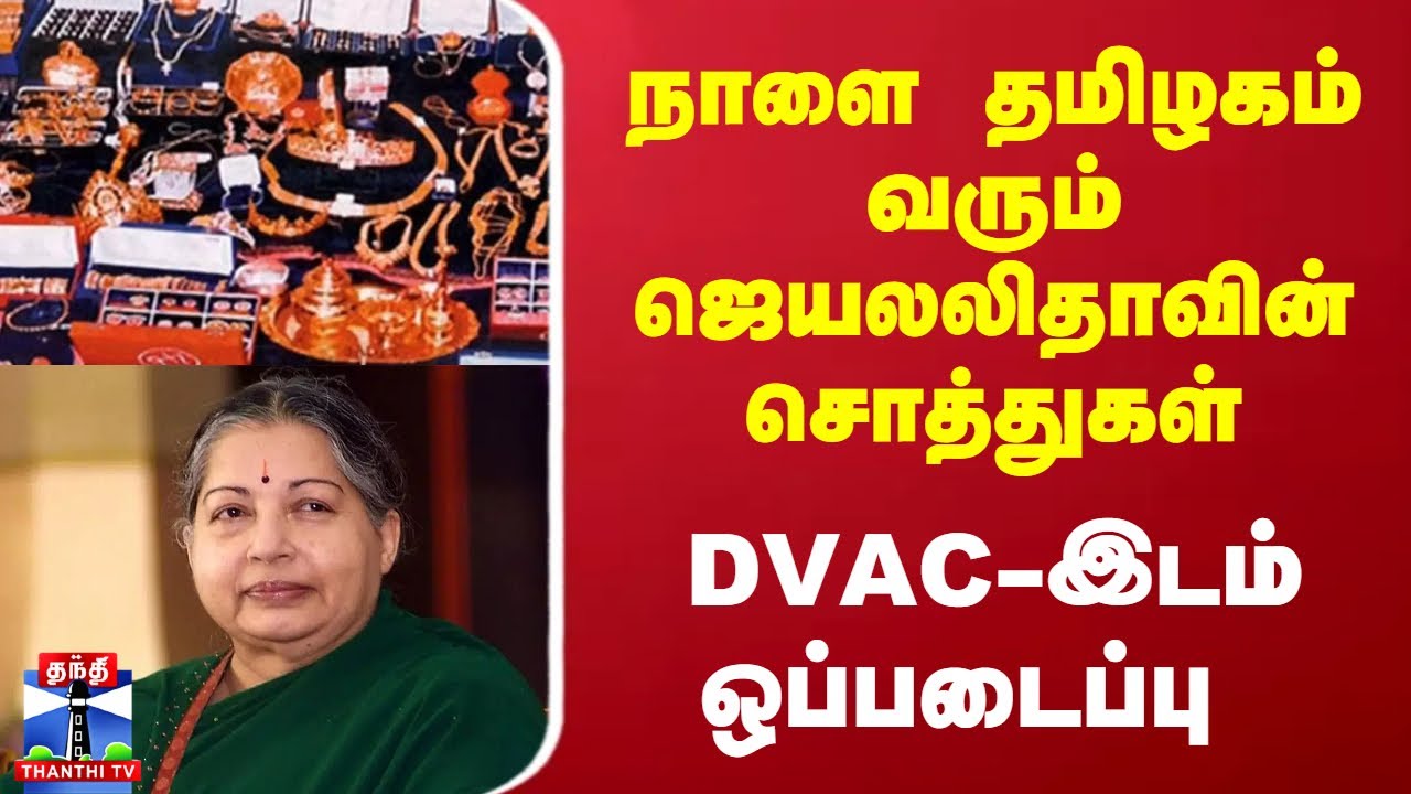 நாளை தமிழகம் வரும் ஜெயலலிதாவின் சொத்துகள்... DVAC-இடம் ஒப்படைப்பு