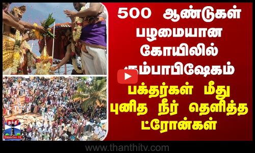 500 ஆண்டுகள் பழமைவாய்ந்த கோவிலில் கும்பாபிஷேக விழா - பக்தர்கள் மீது புனித நீர் தெளித்த ட்ரோன்கள்
