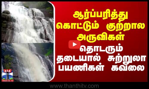 ஆர்ப்பரித்து கொட்டும் குற்றால அருவிகள் - தொடரும் தடையால் சுற்றுலா பயணிகள் கவலை | Kutralam Falls