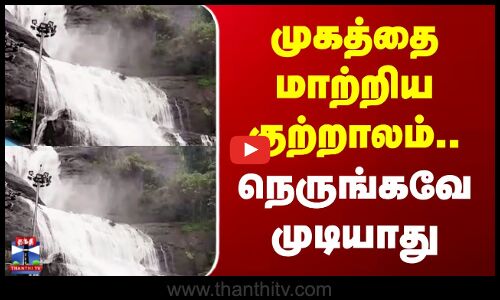 குற்றாலம் மெயின் அருவியில் காட்டாற்று வெள்ளம் நீடிப்பதால் சுற்றுலா பயணிகள் குளிக்க தடை விதிக்கப்பட்டுள்ளது. அருவியில் தண்ணீர் ஆர்ப்பரித்துக் கொட்டும் காட்சிகளை காண்போம்
