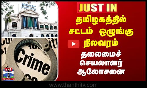 தமிழகத்தின் சட்டம் ஒழுங்கு நிலவரம் தொடர்பாக சென்னை தலைமைச் செயலகத்தில் மாலை 3:30 மணியளவில் தலைமைச் செயலாளர் தலைமையில் ஆலோசனை கூட்டம் நடைபெற உள்ளது.