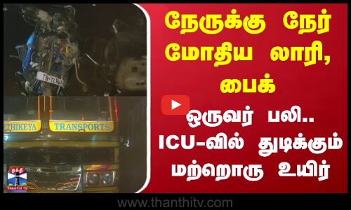 நேருக்கு நேர் மோதிய லாரி, பைக் - ஒருவர் பலி.. ICU-வில் துடிக்கும் மற்றொரு உயிர்