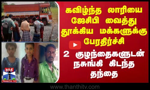 கவிழ்ந்த லாரியை ஜேசிபி வைத்து தூக்கிய மக்களுக்கு பேரதிர்ச்சி - 2 குழந்தைகளுடன் நசுங்கி கிடந்த தந்தை