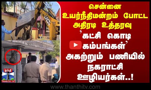 சென்னை உயர்நீதிமன்றம் போட்ட அதிரடி உத்தரவு கட்சி| கொடி கம்பங்கள் அகற்றும் பணியில் நகராட்சி ஊழியர்கள்
