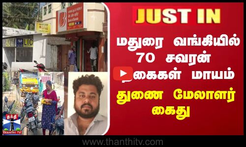 #JUSTIN || மதுரை வங்கியில் 70 சவரன் நகைகள் மாயம் - வங்கி துணை மேலாளர் கைது