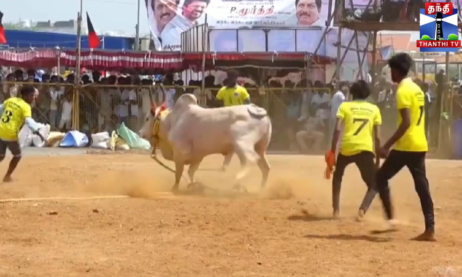 உச்சிமாகாளியம்மன் கோயில் பங்குனி திருவிழாவை முன்னிட்டு நடைபெற்ற வடமாடு மஞ்சுவிரட்டு போட்டியில் 15 காளைகள் பங்கேற்றன. போட்டியில் பங்கேற்ற காளைகளுக்கு கிரைண்டர் மற்றும் வேட்டி, மாலை அணிவித்து மரியாதை செய்யப்பட்டது. சீறிப்பாய்ந்த காளைகளையும் தில்லு காட்டிய வீரர்களையும் கிராம மக்கள் பார்த்து ரசித்தனர்.