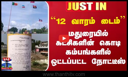 #JUSTIN || ``12 வாரம் டைம்'' - மதுரையில் கட்சிகளின் கொடி கம்பங்களில் ஒட்டப்பட்ட நோட்டீஸ்