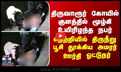 திருவாரூரில் சுவாமி தரிசனத்திற்கு வந்த நபர் குளத்தில் மூழ்கி உயிரிழந்த சம்பவம் சோகத்தை ஏற்படுத்தியுள்ளது. திருவாரூர் மாவட்டத்தில் அமைந்துள்ள தியாகராஜர் கோயில் பங்குனி உத்திர திருவிழா தற்போது நடைபெற்று வருகிறது. இந்த நிலையில், அங்கு சுவாமி தரிசனத்திற்காக வந்திருந்த, கள்ளக்குறிச்சியை பாண்டுரங்கன் என்பவர், கோயில் குளத்தில் நீச்சல் தெரியாமல் மூழ்கி உயிரிழந்தார். அவரது உடல் உடற்கூறாய்விற்காக எடுத்துச் செல்ல தயார் செய்யப்பட்ட நிலையில், அமரர் ஊர்த்தி ஓட்டுநர் இறந்தவரின் நெற்றியில் திருநீறு பூசி ஏற்றிய சம்பவம் அங்கிருந்தவர்களை நெகிழ்ச்சியில் ஆழ்த்தியது