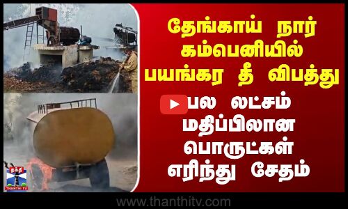 தேங்காய் நார் கம்பெனியில் பயங்கர தீ விபத்து - பல லட்சம் மதிப்பிலான பொருட்கள், டிராக்டர் எரிந்து சேதம்