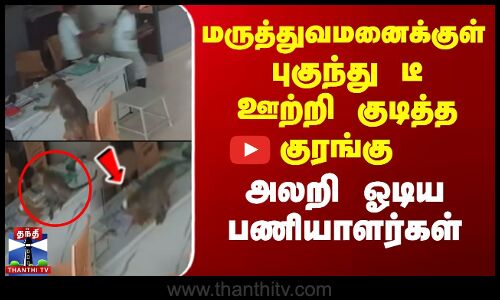 Villupuram | monkey | மருத்துவமனைக்குள் புகுந்து டீ ஊற்றி குடித்த குரங்கு - அலறி ஓடிய பணியாளர்கள்