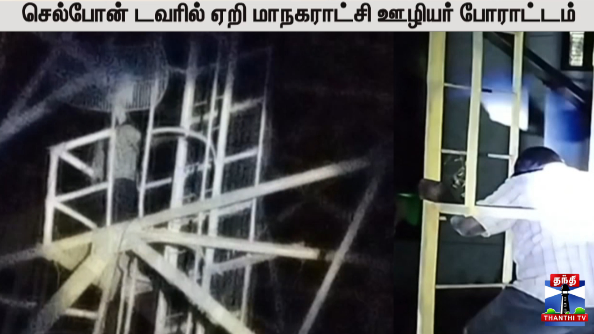 செல்போன் டவரில் ஏறி மாநகராட்சி ஊழியர் போராட்டம்