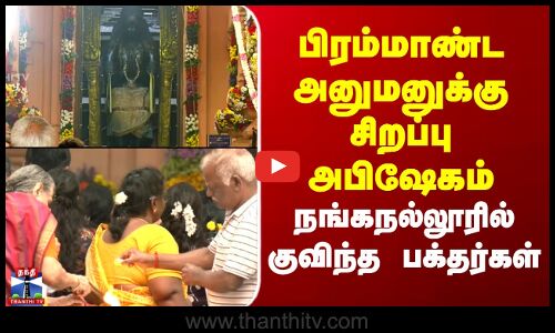 சென்னை நங்கநல்லூரில் உள்ள பிரசித்தி பெற்ற ஆஞ்சநேயர் கோவிலில், அனுமன் ஜெயந்தியை ஒட்டி சிறப்பு அபிஷேகம் நடைபெற்று வருகிறது... அந்த காட்சிகளை பார்க்கலாம்...