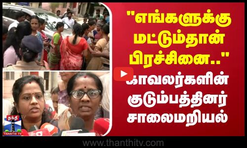 குடிநீர் லாரி வரவில்லை - காவலர்களின் குடும்பத்தினர் திடீர் சாலைமறியல்