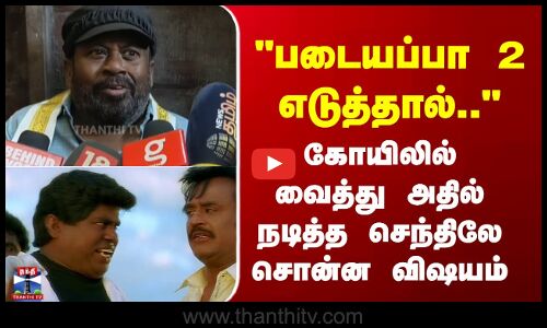 படையப்பா-2 எடுத்தால் அதிலும் நடிப்பேன் - நடிகர் செந்தில். சென்னை திருவொற்றியூர் கடற்கரை சாலையில் உள்ள ஓம் சக்தி அங்காள பரமேஸ்வரி கோயிலில் உலக நன்மைக்காக சண்டியாக பூஜை நடைபெற்றது. இதில் நடிகர் செந்தில் தனது குடும்பத்துடன் கலந்து கொண்டார். இதனையடுத்து செய்தியாளர்களிடம் பேசிய அவர், படையப்பா இரண்டாம் பாகம் எடுத்தால், அதிலும் தான் நடிப்பேன் என்று தெரிவித்தார்.
