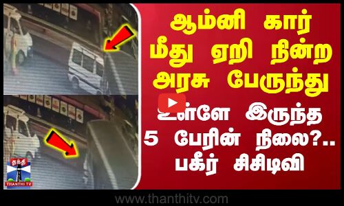 ஆம்னி கார் மீது ஏறி நின்ற அரசு பேருந்து - உள்ளே இருந்த 5 பேரின் நிலை?.. பகீர் சிசிடிவி