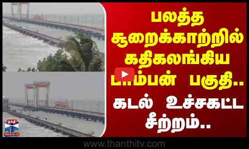 பலத்த சூறைக்காற்றில் கதிகலங்கிய பாம்பன் பகுதி.. கடல் உச்சகட்ட சீற்றம்..
