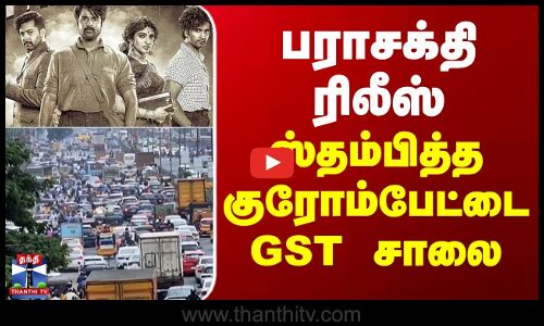 குரோம்பேட்டையில் உள்ள தியேட்டரில் பராசக்தி படம் பாரக்க வந்த ரசிகர்களால் ஜிஎஸ்டி சாலையில் போக்குவரத்து நெரிசல் ஏற்பட்டது...