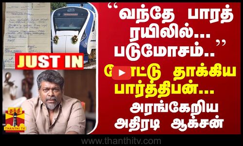 #JUSTIN : ``வந்தே பாரத் ரயிலில்... படுமோசம்..'' போட்டு தாக்கிய பார்த்திபன்.. அரங்கேறிய அதிரடி ஆக்சன்