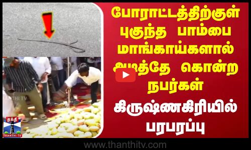 Krishnagiri Snake | போராட்டத்திற்குள் புகுந்த பாம்பை மாங்காய்களால் அடித்தே கொன்ற நபர்கள்