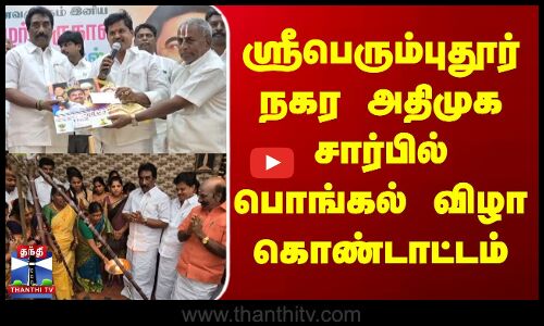 காஞ்சிபுரம் மாவட்டம் ஸ்ரீபெரும்புதூரில் ஸ்ரீபெரும்புதூர் அதிமுக நகர செயலாளர் போந்தூர் மோகன் தலைமையில் பொங்கல் விழா சிறப்பாக கொண்டாடப்பட்டது. ஸ்ரீபெரும்புதூரில் நடைபெற்ற இந்த பொங்கல் விழாவில் அதிமுக மாவட்ட செயலாளரும், முன்னாள் அமைச்சருமான சோமசுந்தரம், அதிமுக கழக அமைப்பு செயலாளர் வாலாஜாபாத் கணேசன், காஞ்சிபுரம் மாவட்ட துணை செயலாளர் போந்தூர் செந்தில் ராஜன், மாவட்ட மகளிர் அணி இணை செயலாளர் பிரசிதாகுமரன் ஆகியோர் சிறப்பு விருந்தினர்களாக கலந்து கொண்டனர். தொடர்ந்து அனைவரும் இணைந்து மண் பானையில் பொங்கல் வைத்து மகிழ்ந்தனர். பின்னர் பல்வேறு விளையாட்டு போட்டிகள் நடத்தப்பட்டன. இதில் ஸ்ரீபெரும்புதூர் அதிமுக நிர்வாகிகள் மற்றும் பொதுமக்கள் என ஆயிரம் பேருக்கு பொங்கல் பரிசு வழங்கப்பட்டது.