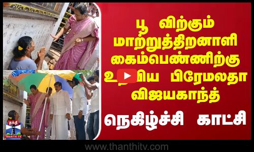பூ விற்கும் மாற்றுத்திறனாளி கைம்பெண்ணிற்கு உதவிய பிரேமலதா விஜயகாந்த் - நெகிழ்ச்சி காட்சி