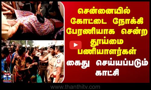 சென்னை பாரிமுனையில் இருந்து கோட்டையை நோக்கி பேரணியாக புறப்பட்ட தூய்மை பணியாளர்கள் கைது செய்யப்பட்டுள்ளனர்.