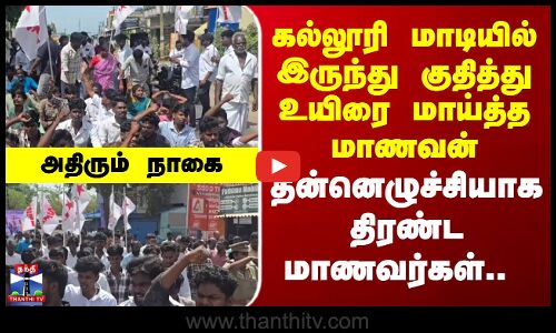 Protest | கல்லூரி மாடியில் இருந்து குதித்து உயிரை மாய்த்த மாணவன்.. தன்னெழுச்சியாக திரண்ட மாணவர்கள்.