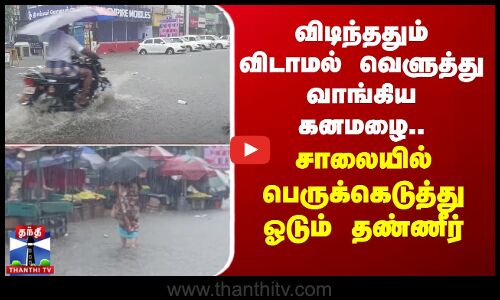 விடிந்ததும் விடாமல் வெளுத்து வாங்கிய கனமழை.. சாலையில் பெருக்கெடுத்து ஓடும் தண்ணீர்