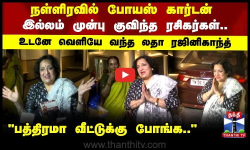 Rajini | நள்ளிரவில் போயஸ் கார்டன் இல்லம் முன்பு குவிந்த ரசிகர்கள்.. உடனே வெளியே வந்த லதா ரஜினிகாந்த்