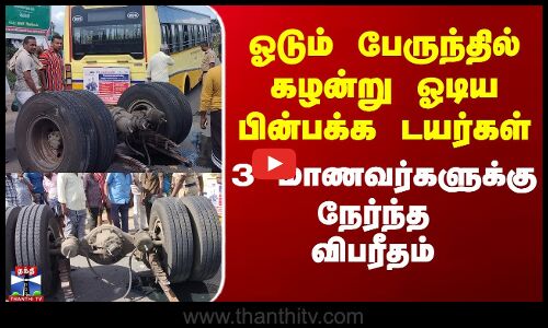 ஓடும் பேருந்தில் கழன்று ஓடிய பின்பக்க டயர்கள்.. 3 மாணவர்களுக்கு நேர்ந்த விபரீதம்