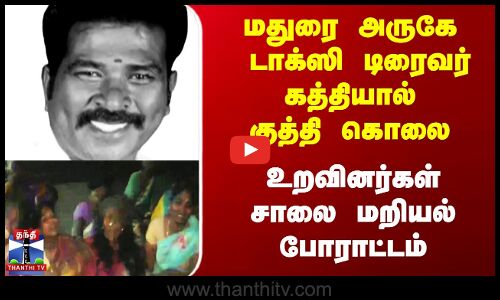 மதுரை அருகே டாக்ஸி டிரைவர்கத்தியால் குத்தி கொலை உறவினர்கள் சாலை மறியல் போராட்டம்...