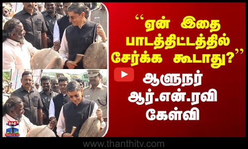 பறை இசை குறித்து ஏன் பாடத்திட்டத்தில் சேர்க்க கூடாது - ஆளுநர் கேள்வி. விருதுநகர் மாவட்டம் சாத்தூர் அருகே மேட்டுமலையில் பத்ம ஸ்ரீ வேலு ஆசானுக்கு புதிய குடியிருப்புடன் கூடிய பாரதி பறை பண்பாட்டு மையம் அமைக்கப்பட்டுள்ள நிலையில், ஆளுநர் ஆர்.என்.ரவி அதனை திறந்து வைத்து சிறப்புரை ஆற்றினார். முன்னதாக ஆளுநரை 100க்கும் மேற்பட்ட பறை இசை கலைஞைர்கள் பறை அடித்து வரவேற்றனர். இதனை தொடர்ந்து வேலு ஆசானும், ஆளுநரும் ஒன்றாக பறையடித்து மகிழ்ந்தனர். விழாவில் பேசிய ஆளுநர் ஆர்.என்.ரவி, பறை இசை குறித்து பாடத்திடத்தில் ஏன் சேர்க்க கூடாது என்று கேள்வி எழுப்பி,அதனை அறிவியில் பூர்வமாக ஆராய்ச்சி மேற்கொள்ளவும் வலியுறுத்தி உள்ளார்.