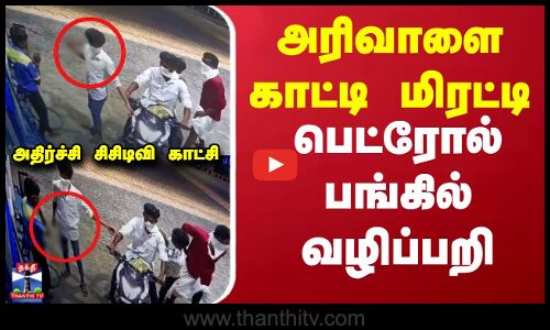 அரிவாளை காட்டி மிரட்டி பெட்ரோல் பங்கில் வழிப்பறி... அதிர்ச்சி காட்சி