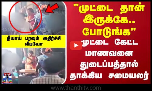 முட்டை கேட்ட மாணவனை துடைப்பத்தால் தாக்கிய சமையலர்.. பரவும் அதிர்ச்சி வீடியோ