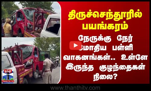 திருச்செந்தூரில் பயங்கரம் - நேருக்கு நேர் மோதிய பள்ளி வாகனங்கள்