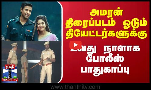 சிவகார்த்திகேயன் நடிப்பில் வெளியான அமரன் திரைப்படம் திரையிடப்படும் திரையரங்குகளுக்கு, இரண்டாவது நாளாக போலீசார் பாதுகாப்பு போடப்பட்டுள்ளது.