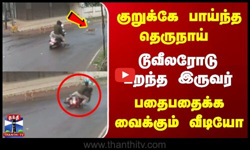 குறுக்கே பாய்ந்த தெருநாய் | டூவீலரோடு பறந்த இருவர் | பதைபதைக்கும் வீடியோ