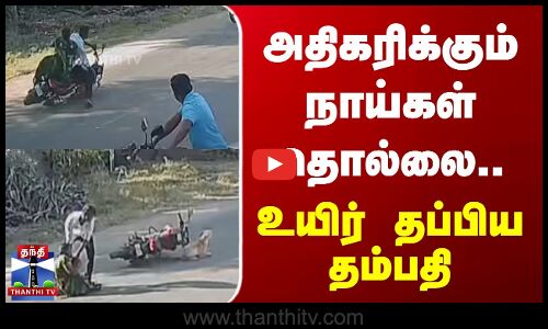 Street Dogs | Accident | அதிகரிக்கும் நாய்கள் தொல்லை.. உயிர் தப்பிய தம்பதி