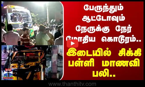 Student Death | பேருந்தும் ஆட்டோவும் நேருக்கு நேர் மோதிய கொடூரம்.. இடையில் சிக்கி பள்ளி மாணவி பலி..
