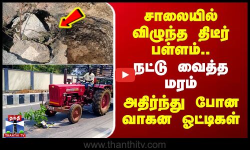 சாலையில் விழுந்த திடீர் பள்ளம்.. நட்டு வைத்த மரம் - அதிர்ந்து போன வாகன ஓட்டிகள்